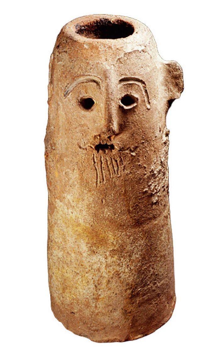 陶制、筒状,顶部捏制出一位老者形象,栩栩如生,且颇有点动画片里阿凡提的影子,慈眉善目,带点诙谐。如果你在博物馆里看到它,不会想到这是一盏陶灯。因为曾多次被大规模盗掘,交河故城留下的文物不多,现存文物中,“人面陶灯”是颇受关注的一件,有人称它为古灯界的“显眼包”。