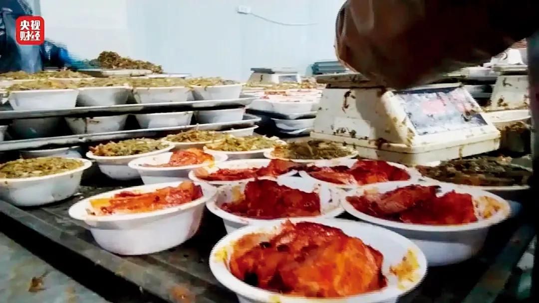 (视频截图)2024年央视3·15晚会曝光的用槽头肉制作梅菜扣肉预制菜现场