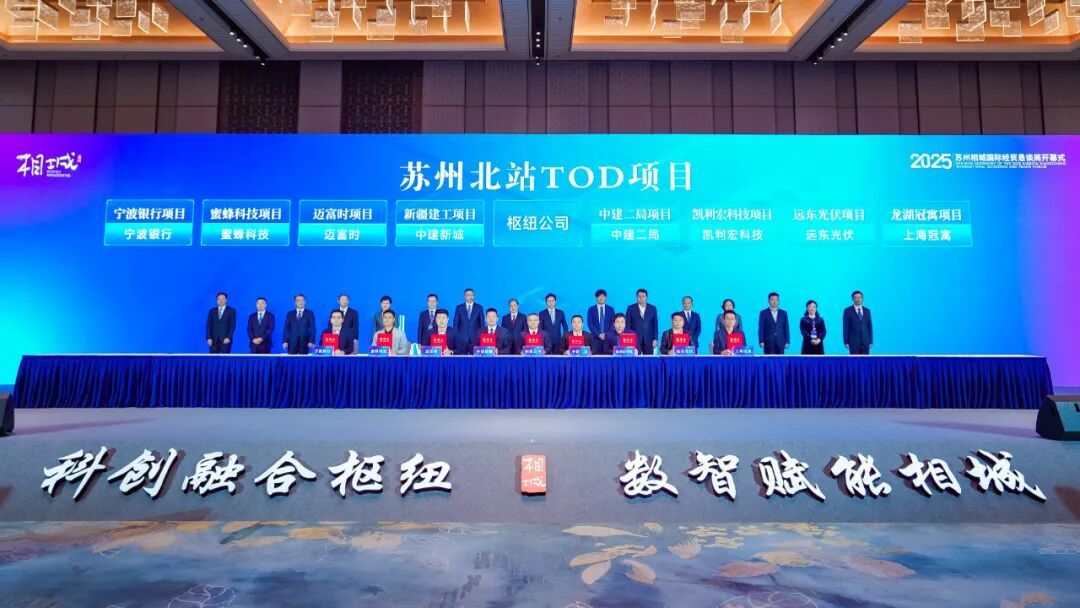 开幕式上,相城区开展苏州北站TOD招商情况推介。今年2月,苏州建城史上最大城建项目——苏州北站综合枢纽工程启动,相城乃至苏州以交通大枢纽重塑发展大格局。到2027年底竣工启用,从相城出发一小时走遍长三角将成为现实。面向“枢纽时代”,相城不仅成为链接八方的交通要地,更成为人才、资本、信息汇聚融通的“价值高地”,成为最能代表苏州品位、彰显未来气质的“城市会客厅”。