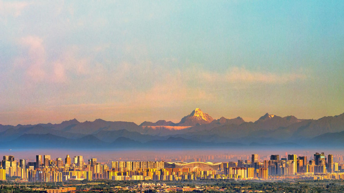 成都素有“雪山下的公园城市”之名,最好的雪山观景位可能就是自己家的阳台。为了看雪山,成都人甚至自创了“开山节”,将每年春天第一次在成都大范围看到雪山定为节日。