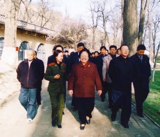 2002年4月,彭珮云率全国人大执法检查组在陕西省检查妇女权益保障法落实情况。图/受访者提供