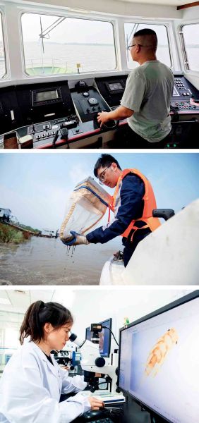 从9月中旬开始,一艘挂着“安徽省重点水域水生生物资源监测”横幅的小船,每天会定时出现在长江马鞍山段水域:有的鱼类在夜间活动,为了完整采样,工作人员通常在傍晚前下网,次日清晨再回到原处起网。