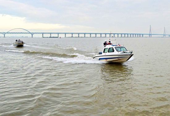 2022年11月23日,江苏南通市通州区公安部门联合渔政部门在辖区内进行水上巡查。图/新华