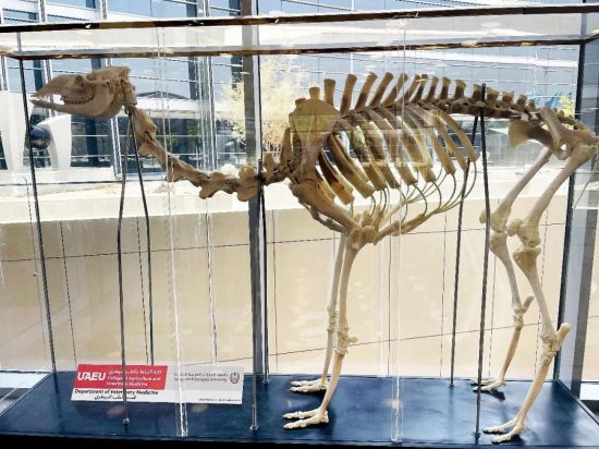 林嘉所在的阿联酋大学正门以及校内新月楼报告厅门前的骆驼骨架。图/受访者提供