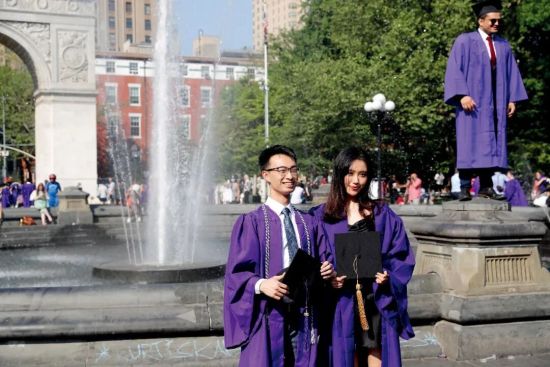2021年5月19日,美国纽约大学的中国留学生在曼哈顿华盛顿广场欢庆毕业时刻。摄影/本刊记者 廖攀