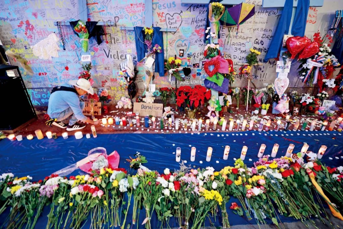 2025年1月4日,人们在美国新奥尔良市波旁街悼念遇难者。图/视觉中国