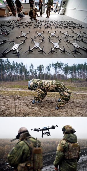 中图:2025年1月29日,乌克兰基辅,乌克兰武装部队设计的战争机器狗。